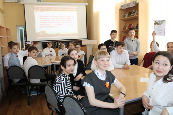 В Центральной городской библиотеке к 80-летию разгрома советскими войсками немецко-фашистских войск в Сталинградской битве прошел медиаурок воинской славы «За святую Родину – вперёд», участниками которого стали учащиеся 10-а класса МАОУ «СОШ №2».